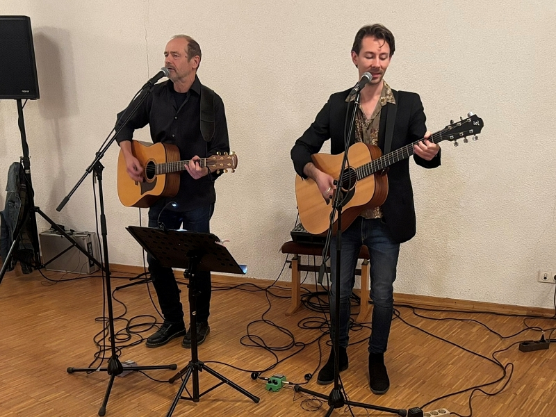 Das Gitarrenduo Jo-El, Jürgen Fried und Exel Wiedeman, begleitete die Jubiläumsfeier 50 Jahre Bürgeraktion musikalisch und unterhielt das begeisterte Publikum mit bekannten Folk und Pop Songs aus den sechziger und siebziger Jahren.